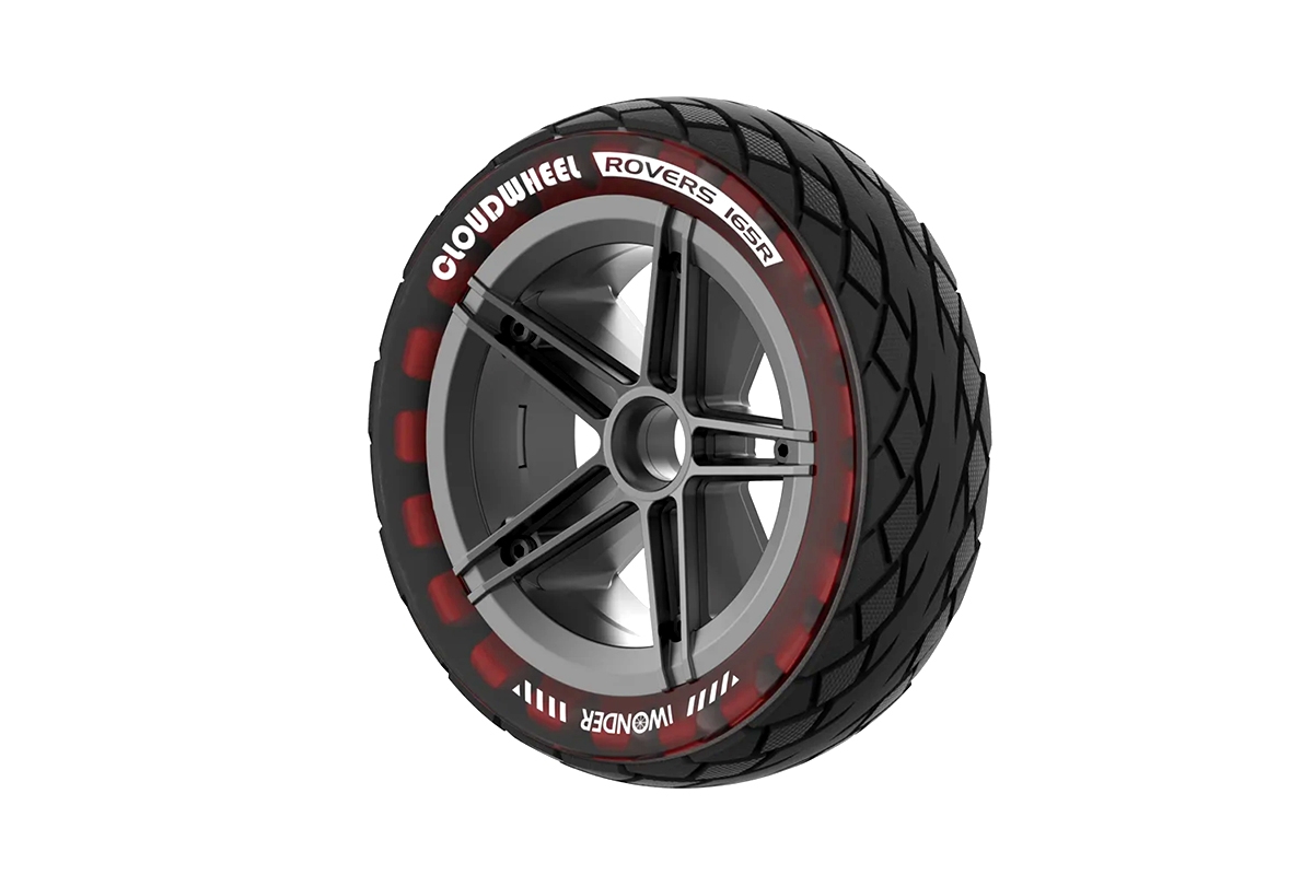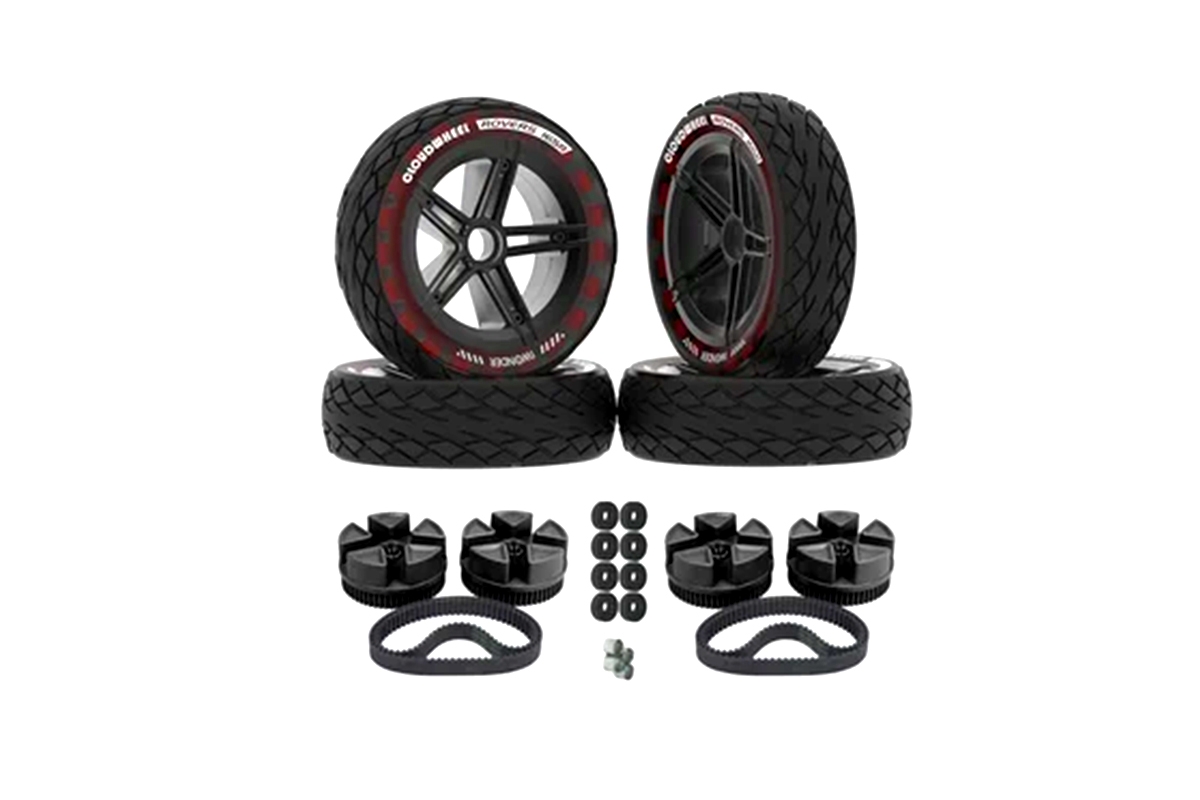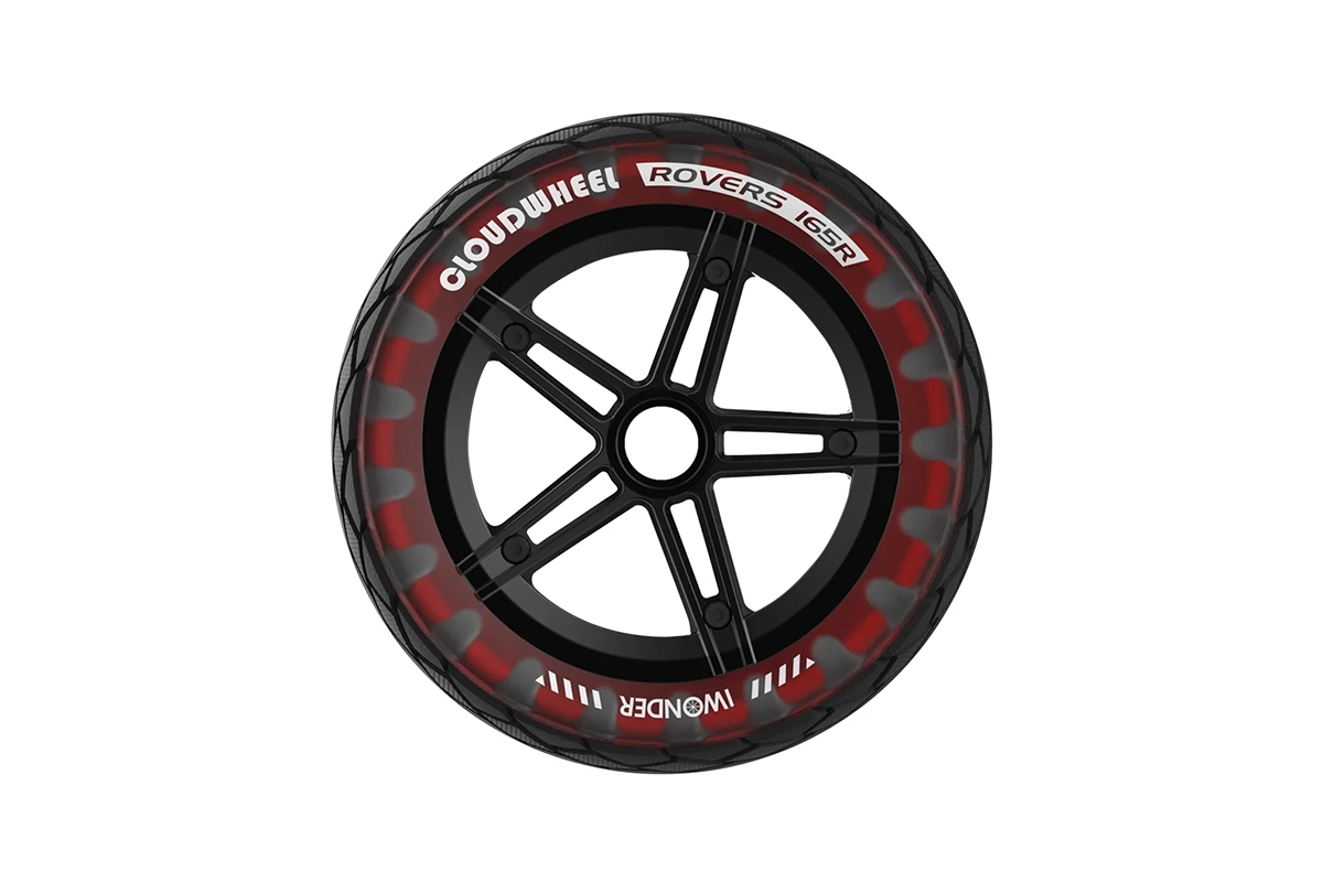 Sada kol Cloud Wheel Rover. Průměr kola 165 mm. Povrch kola tvoří vrstva protiskluzové gumy. Vnitřní vrstva je tvořena polyuretanem a tlumícím DFC jádrem. Nárazy tlumí i polykarbonátové přezky, ve kterých je DFC jádro usazeno. Povrch gumy má unikátní vzorek pro lepší odvádění vody. Vyměnitelný vnitřek kola. Šířka kola 50 mm. Tvrdost 60A.