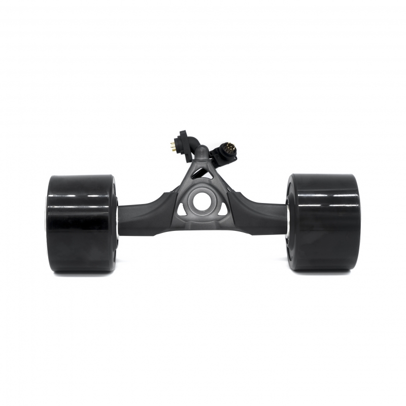 Pohon Hub pro longboard Exway Flex. Maximální výkon 1000W*2, točivý moment 7,6 Nm. Model DHT8, váha 2,2 kg. Trucky Trist 7". Motory jsou umístěny přímo v náboji kola
