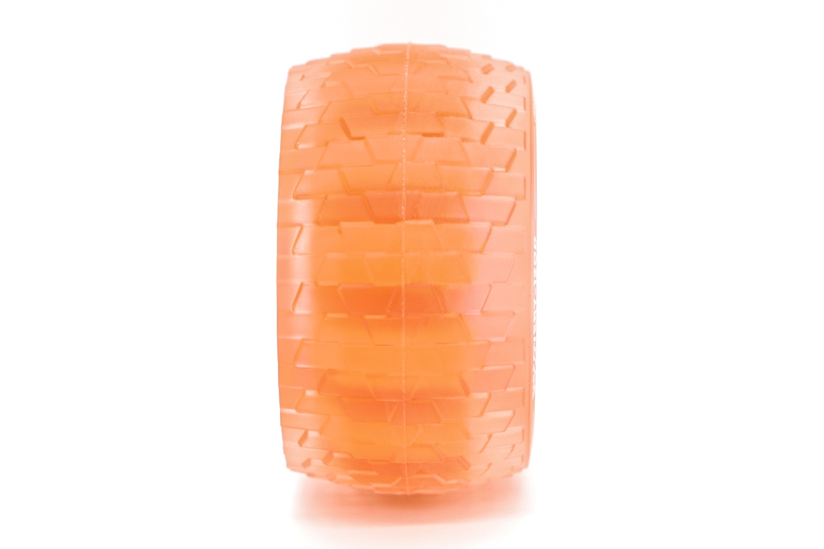 Speciální terénní kola Cloud Wheel s jádrem z tvarované tlumící pěny. Oblý tvar a speciální vzorek zajišťují větší přilnavost v zatáčkách. Balení obsahuje 4 kola (105mm, oranžová)