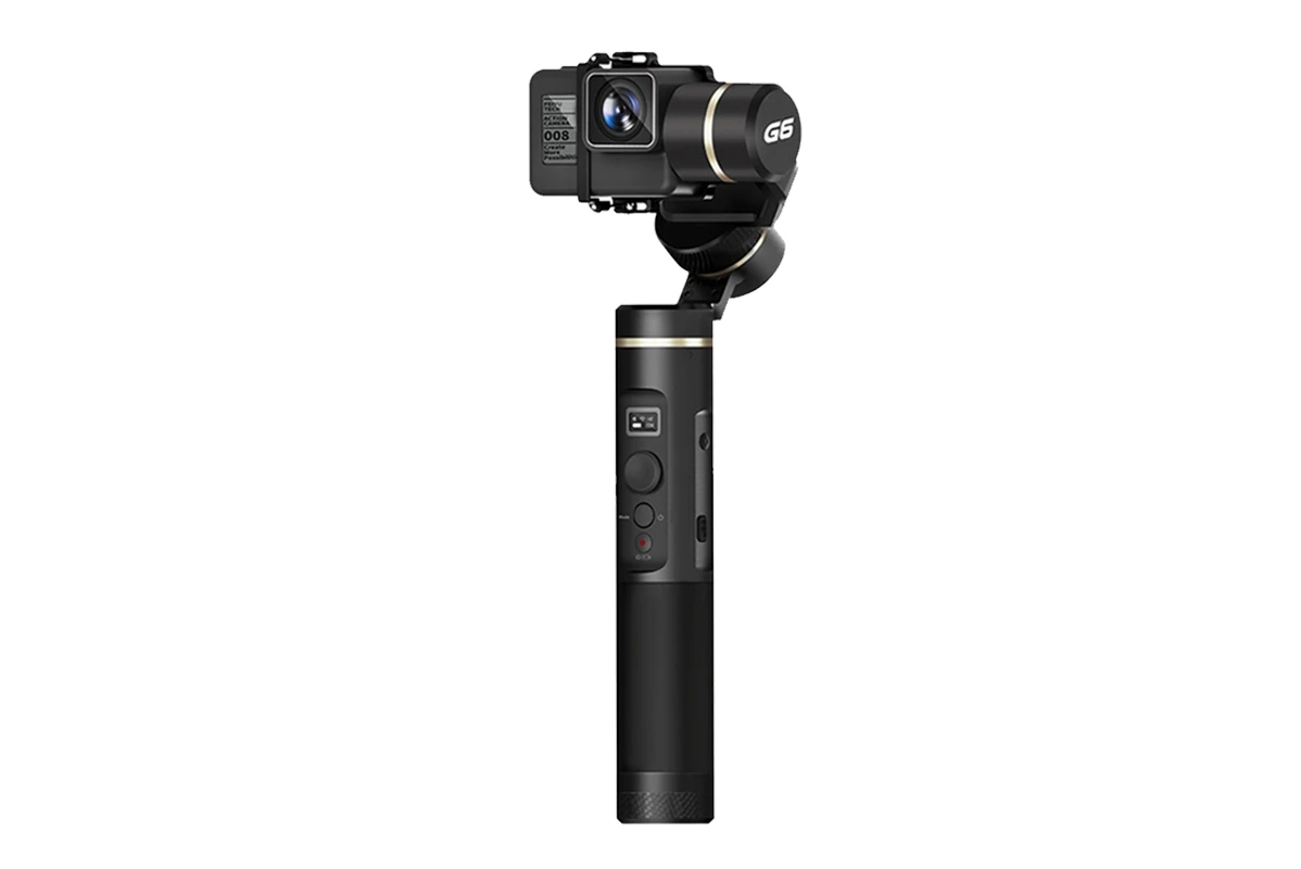 * G6 je kompatibilní s kamerami GoPro HERO7/HERO6/HERO5, YI 4K kamerou a dalšími akčními kamerami s podobným tvarem nebo rozměry. S vyměnitelným držákem je gimbal G6 kompatibilní i s kamerami RX0.