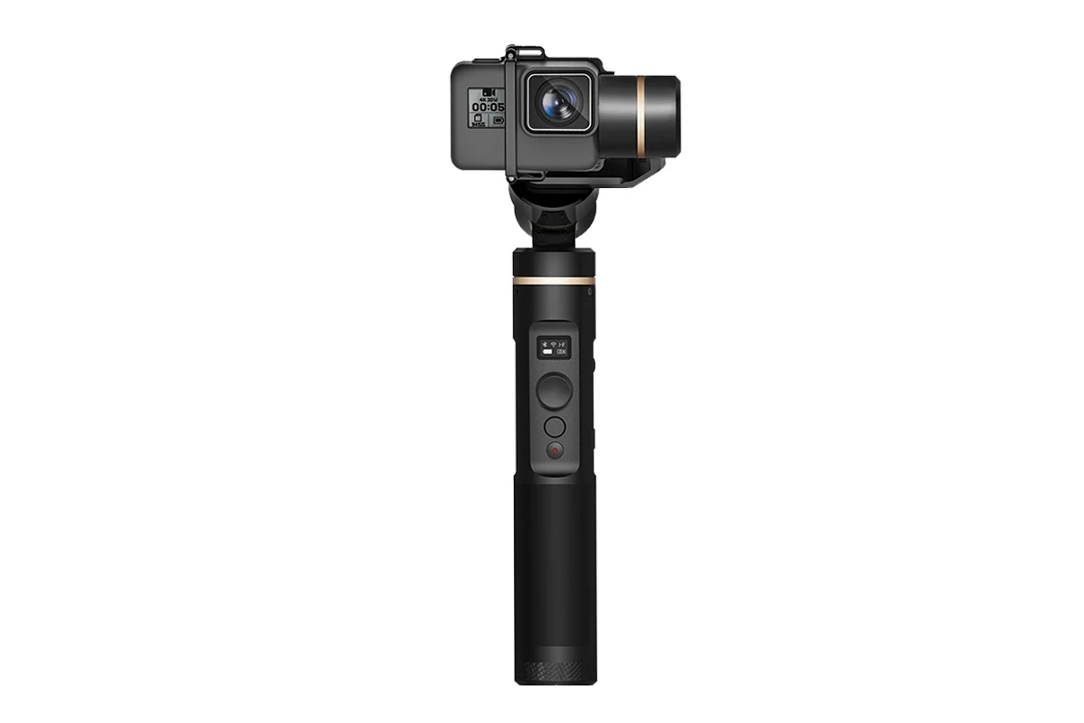 Stabilizátor obrazu pro akční kamery s funkcemi propojení kamery se stabilizátorem a telefonem přes mobilní aplikaci, voděodolné provedení a dlouhá výdrž baterie.