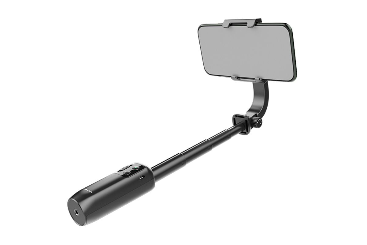 Skládací jednoosý stabilizátor pro mobilní zařízení do velikosti 6,6". Vestavěná 18cm teleskopická tyč. Maximální zatížení 250g. Vestavěný akumulátor pro 6hodinový provoz.