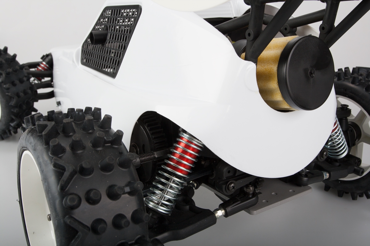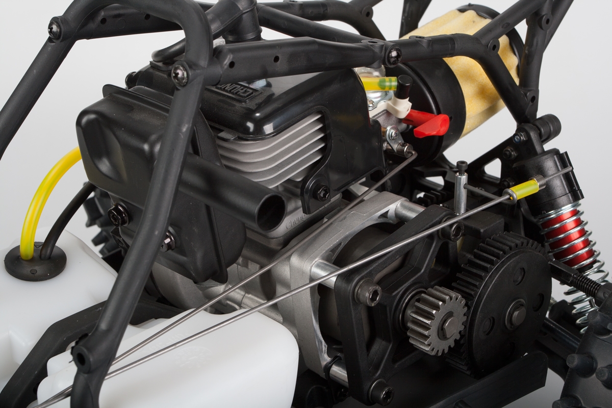 Model je postaven pevném 4mm duralovém platu. Všechny šrouby na spodní straně jsou zápustné s žádnými vyčnívajícími hlavami. Další díly jakou jsou rameny, domečky diferenciálů apod. jsou z plastu plněného skelnými vlákny. Tlumiče jsou olejové s vinutými pružinami. Plně osazeno kuličkovými ložisky. O pohon se stará výkonný dvoutaktní benzinový motor o obsahu 26ccm vybavený tahovým startérem. Nádrž o obsahu 0,8l zaručuje dobu jízdy cca 60minut. K modelu je možné dokoupit velké množství tuningových dílů a tak dále vylepšovat už tak skvělé jízdní vlastnosti.
