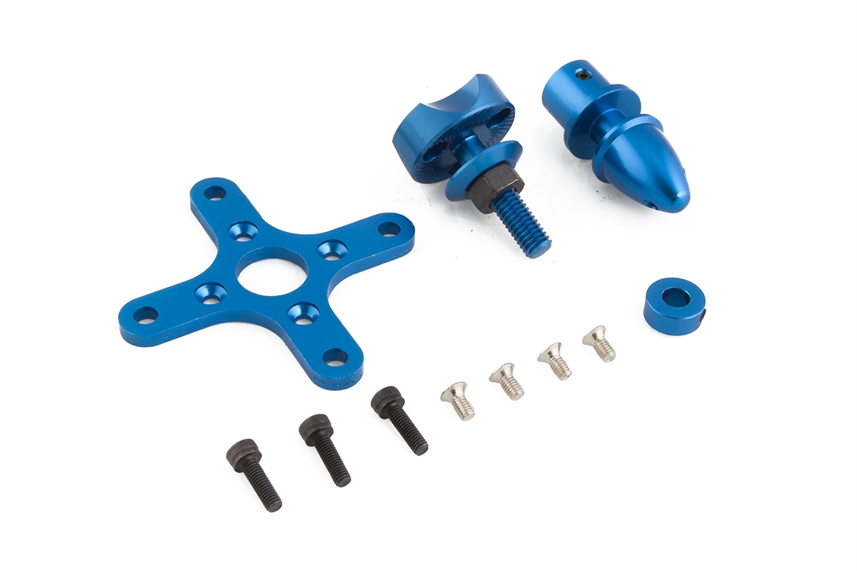 Sada motoru obsahuje: střídavý motor FOXY C4130-275 s kabely s připájenými 4 mm zlacenými konektory, unašeč pro pevnou vrtuli, sadu pro zadní montáž, návod.
