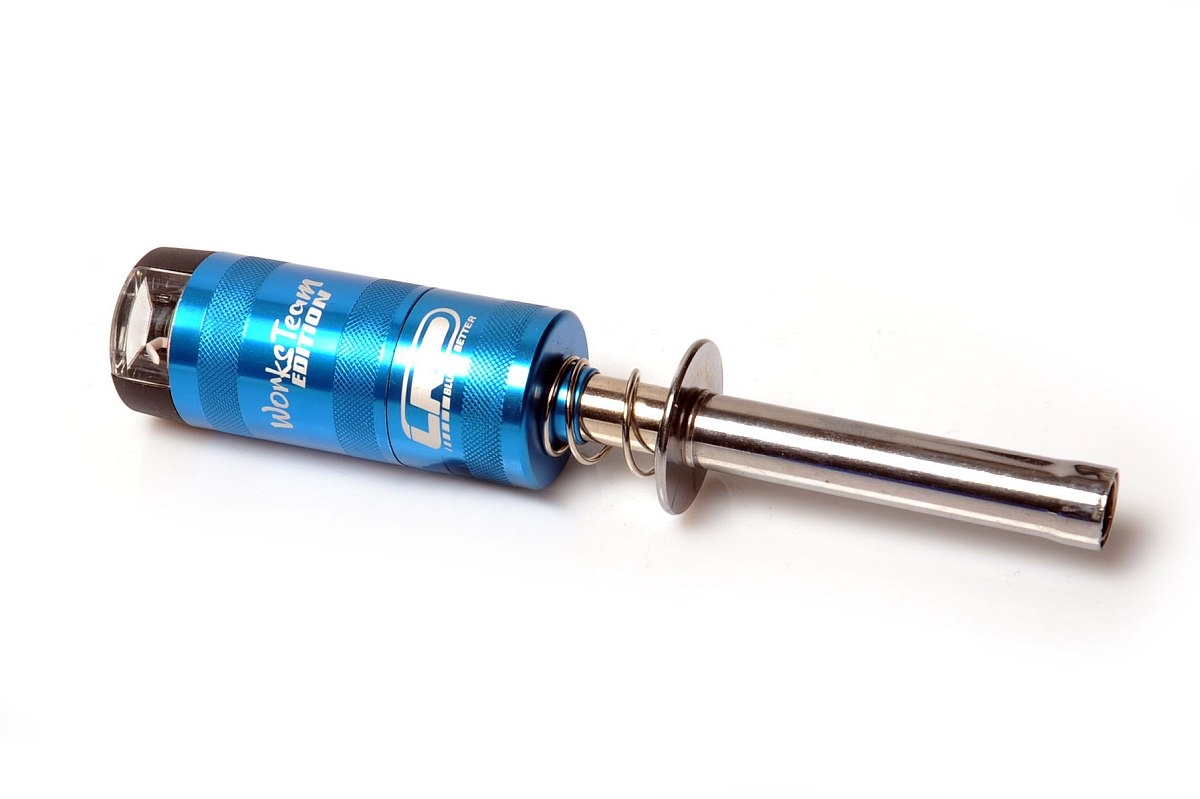 Kompaktní žhavící koncovka - pouzdro pro akumulátor sub-C s měřidlem napětí.