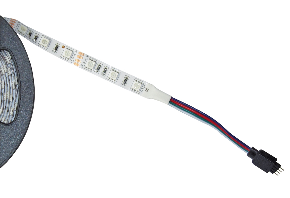 RGB LED pásek je složen z tříbarevných LED diod (red = červená, green = zelená a blue = modrá)