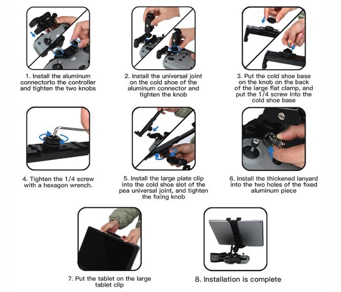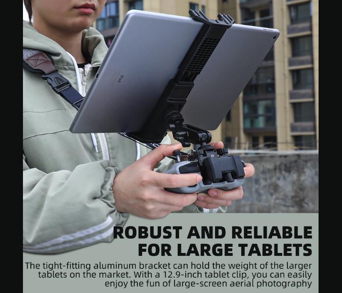 Suitable for 8-12.9inch tablets or smartphones. Features: The CNC base part is installed in DJI RC-N1. It’s more stable with the tablets. The universal-joint part is flexible in multi-angles and quick-released. Compatible with DJI Mavic 3 / Air 2S / Mavic Air 2 / MINI 2.