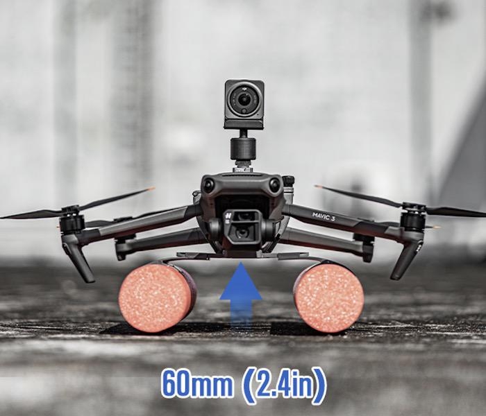 Rising height: 60mm Camera adapter with 2 cold shoe ports on each side and 1/4” port on the top and with GoPro adapter 156g