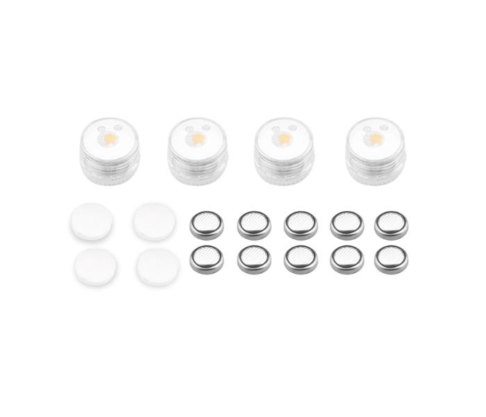Cena za 4 LED světla a 10ks knoflíkových článků. Barva světla: bílý (trvale svitici LED) 15.6g (CR927 Aku)