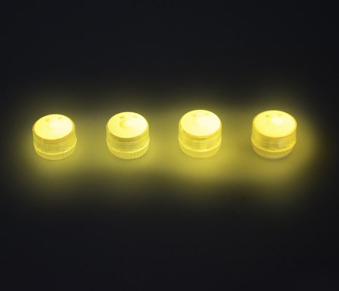 Cena za 4 LED světla a 10ks knoflíkových článků. Barva světla: Žlutá (trvale svitici LED). 15.6g