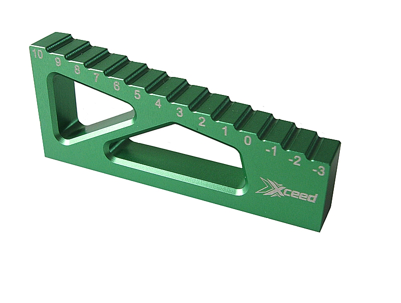 Lehký hliníkový nástroj pro měření propadu ramen. Laserem gravírované s výškou od -3 do 10mm v krocích po 1mm. Na boku vyryté logo Xceed.