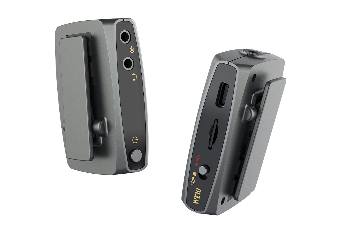 WE10 je bezdrátový mikrofonní systém s vysílačem a přijímačem. Ve vysílači je vestavěný kvalitní všesměrový mikrofon. Celý sytém se snadno ovládá, je skladný a nabízí záznam zvuku s vysokou kvalitou na externí nahrávací zařízení nebo na microSD kartu. Součástí je také externí klopový mikrofon.