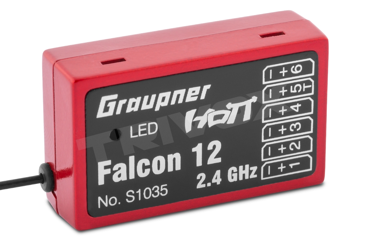 Dvanáctikanálová RC souprava 2.4GHz s pamětí pro 250 modelů, mixy akro, větroně, heli, tři letové režimy, bezdrátový učitel/žák systém, volně přiřaditelné vypínače. Sada obsahuje: Vysílač, Tx Lipo 1500mAh, přijímač Falcon 12 HoTT.