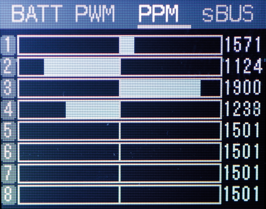 - Změření hodnoty signálu PWM / PPM / SBUS