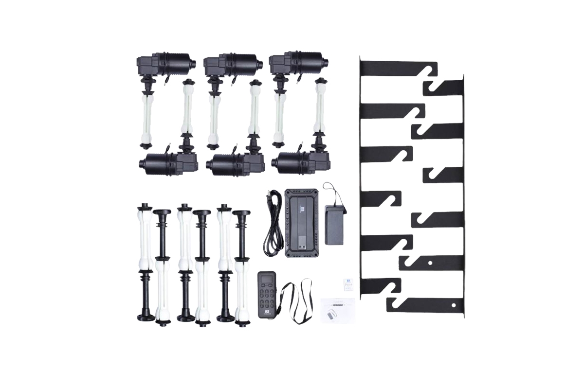 Tato motorizovaná elektrická sada pohonu pozadí může pohánět až 6 rolí. Mohou být připevněny ke stěně nebo stropu.
