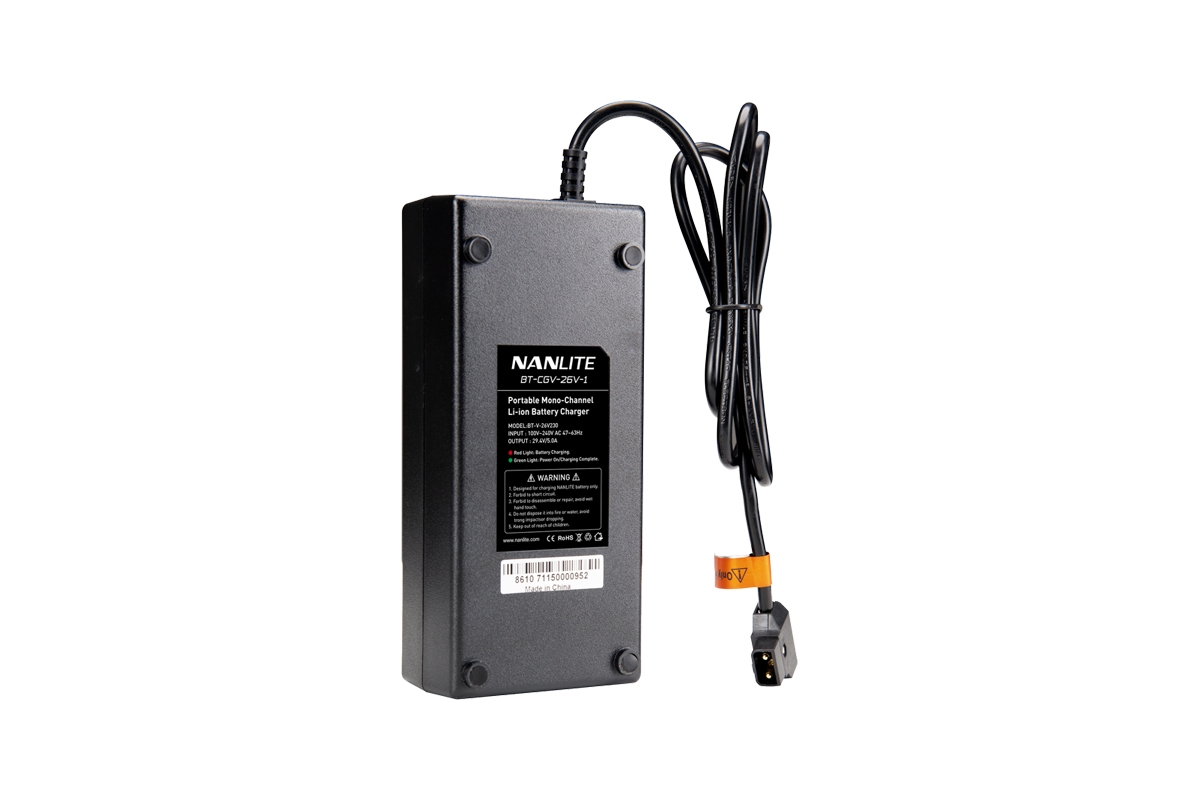 Nabíječka baterií NANLITE 26V s montáží do V se dodává s možností jednoduchého nebo duálního nabíjení pro obě varianty WH; 230 WH (BT-V-26V230) a 270 Wh (BT-V-26V270).