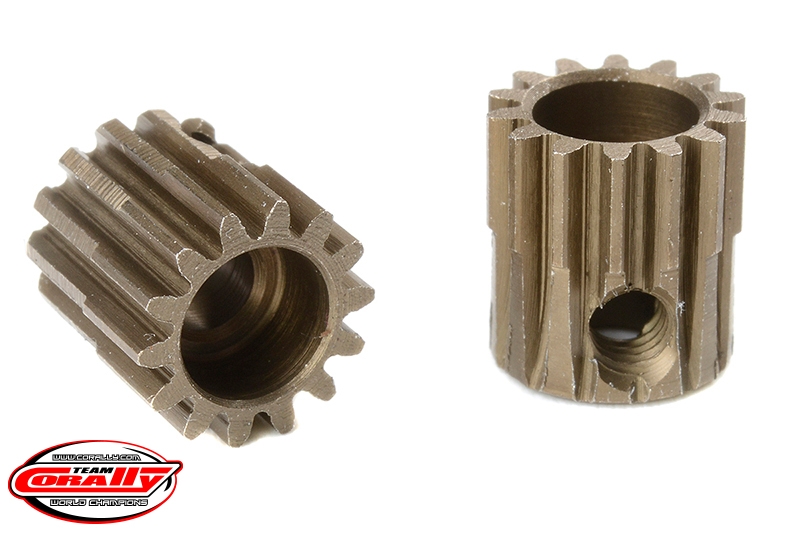 Krátké provedení, materiál tvrzená ocel, 14 zubů, modul ozubení 48DP. Pro hřídel motoru o průměru 3.17 mm (1/8 in). Pastorky TEAM CORALLY jsou vyráběny frézováním a následně tvrzeny, čímž je zajištěna vysoká přesnost ozubení. Všechny pastorky TEAM CORALLY jsou vyrobeny v EU.