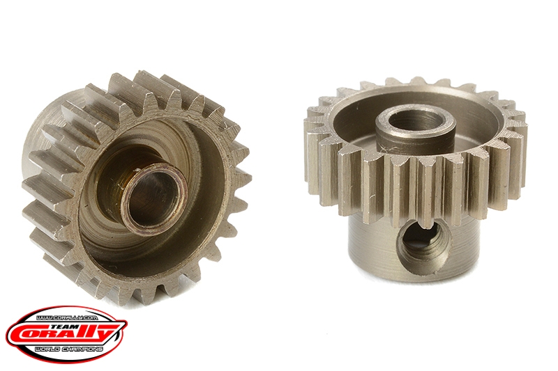 Krátké provedení, materiál tvrzená ocel, 23 zubů, modul ozubení 48DP. Pro hřídel motoru o průměru 3.17 mm (1/8 in). Pastorky TEAM CORALLY jsou vyráběny frézováním a následně tvrzeny, čímž je zajištěna vysoká přesnost ozubení. Všechny pastorky TEAM CORALLY jsou vyrobeny v EU.