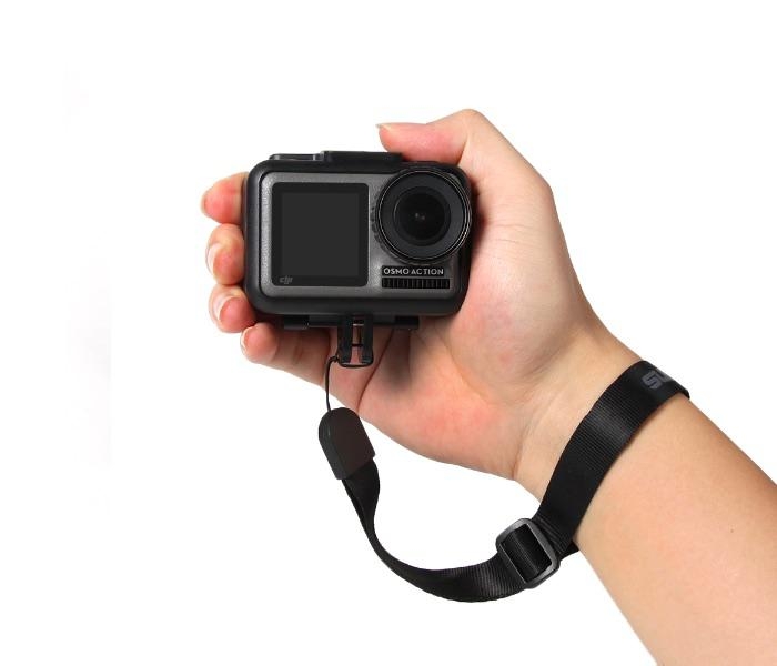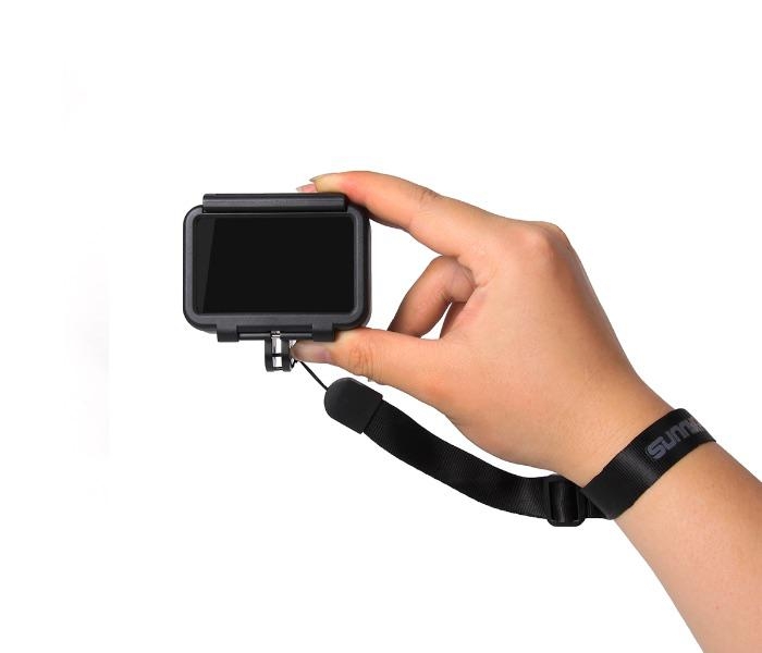 Bezpečnostní pásek na zápěstí sloužící jako ocharna před nechtěným upuštěním kamery.