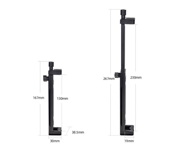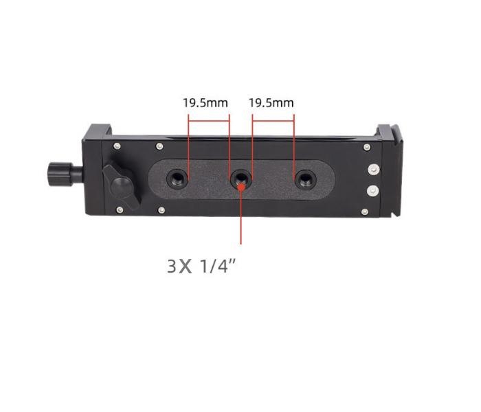 Weight: 170g Clip Width: 130mm - 230mmWith 1/4" screw holes and Arca-Swissdovetail slot and cold shoe port