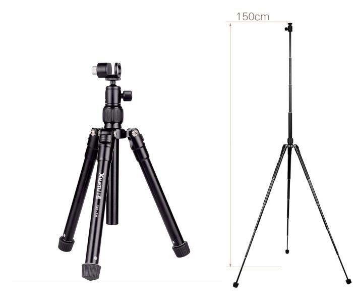 720g Foldable Length: 24.5cm Max. Height: 1500mm Lowest Height: 250mm XILETU XBT-235 3in1 Extension Selfie Stick and Mini Tripod Stand With Phone Holder for Smartphone, DSLR and Mirrorless Camera
