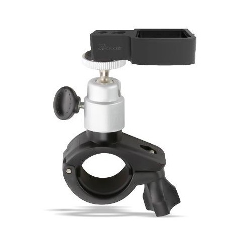 Držák, díky kterému lze umístit kameru na řídítka, nebo jakoukoliv jinou trubku do průměru 16-30 mm. Možnost otáčení o 360°. Hmotnost: 95g