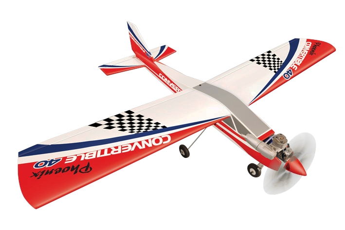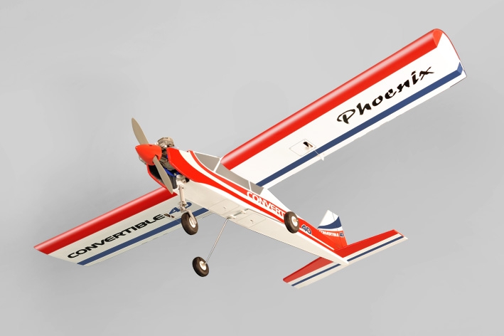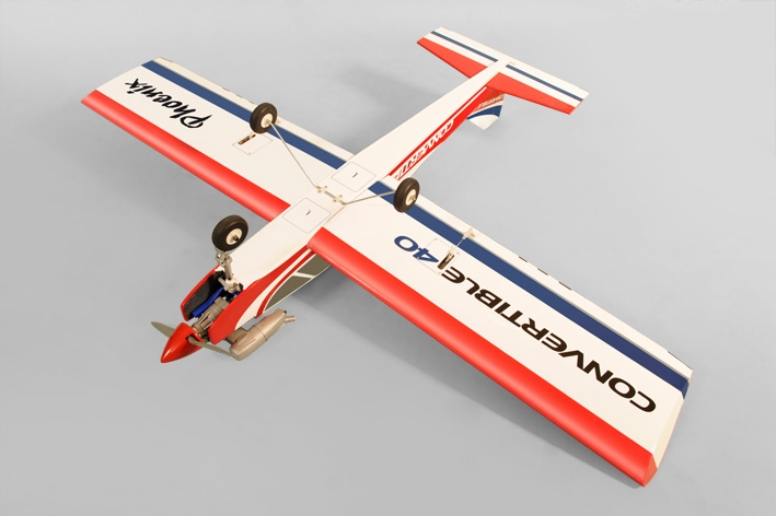 Jak název napovídá, s modelem Convertible dostáváte obrazně řečeno dva modely v jedné krabici. Pokud jeho křídlo upevníte k horní části trupu, dostanete cvičný hornoplošník pro výuku létání a rekreační poletování schopný základní akrobacie. Při upevnění křídla ke spocní části trupu budete mít cvičný akrobatický hornoplošník, se kterým bezpečně zvládnete létání klasické akrobacie. Convertible je určen pro pohon dvoutaktem 6,5-8,5 ccm nebo elektromotorem třídy AXI 2826 nebo RAY C 4250.