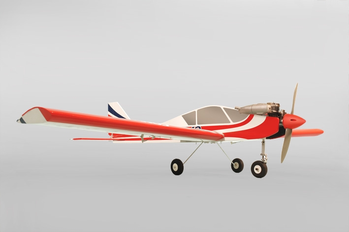 Cvičný hornoplošník nebo dolnoplošník (podle toho, jak namontujete křídlo) pro motory 7,5-8,5ccm s polosouměrným profilem křídla, ovládaná křidélka, směrovka a výškovka. Konstrukční trup a nosné plochy.