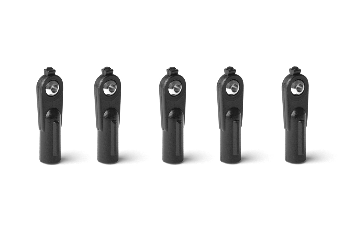 Nylonový pouzdro s kulovým čepem s otvorem 2mm pro pohyb bez tření. 4-40" závit v nylonovém pouzdře. Balení 5ks.