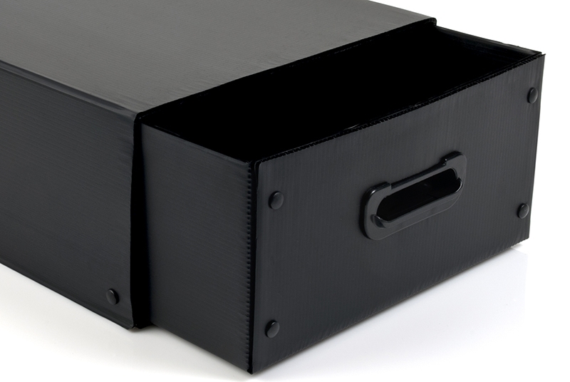 Přepravní taška se dvěma šuplíky pro přepravu příslušenství k RC autům nebo jeho příslušenství. Rozměr šuplíku 30 x 48 x 15 cm, rozměr tašky je 54 x 51 x 33 cm. Šuplíky jsou vyrobeny z plastového kartonu. Úchyty šuplíků jsou vyrobeny z plastového výlisku. Každý šuplík je vsazen do kartónového obalu, čímž je zamezeno jeho vysypání.