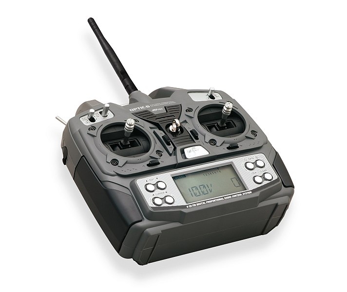Pro naše komplety jsme připravili osvědčené a kvalitní značkové počítačové RC soupravy Hitec OPTIC 6 2,4 GHz, které umožňují nastavovat velikosti výchylek, dvojí výchylky, exponenciální průběh výchylek, obracet smysl výchylek, mají celou řadu mixů dovolujících ovládat křidélka dvěma zvláštními servy a mixovat je jako klapky, ovládat samokřídla a modely s motýlkovými ocasními plochami, 3D akrobatické modely s výškovkou ovládanou 2 servy, chytré mixy pro větroně (včetně butterfly mixu)... A to vše se ukládá do paměti pro 10 modelů!
