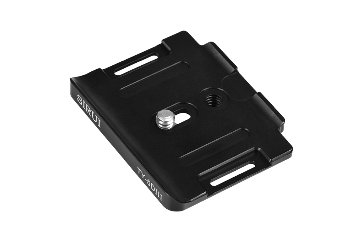 Rychloupínací destička Sirui TY-5D III je navržena speciálně pro digitální fotoaparáty Canon EOS 5D Mark III. Tvar přesně odpovídá příslušným modelům tak, aby stabilizoval fotoaparát během fotografování ve vertikální orientaci nebo při naklápění hlavy.