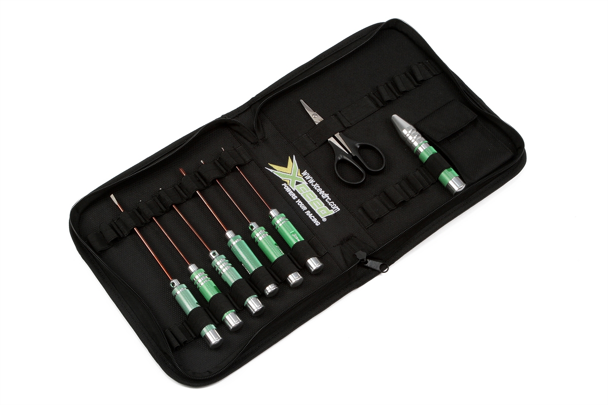 sada obsahuje: taška, 1,5mm, 2,0mm, 2,5mm, 3,0 Imbus, 4mm křížový šroubovák, 4mm plochý šroubovák, řezák lexanu, lexanové zahnuté nůžky.
