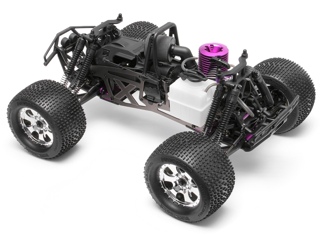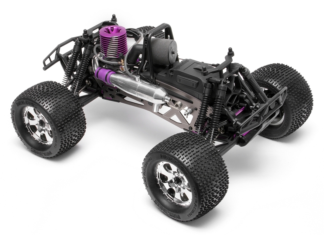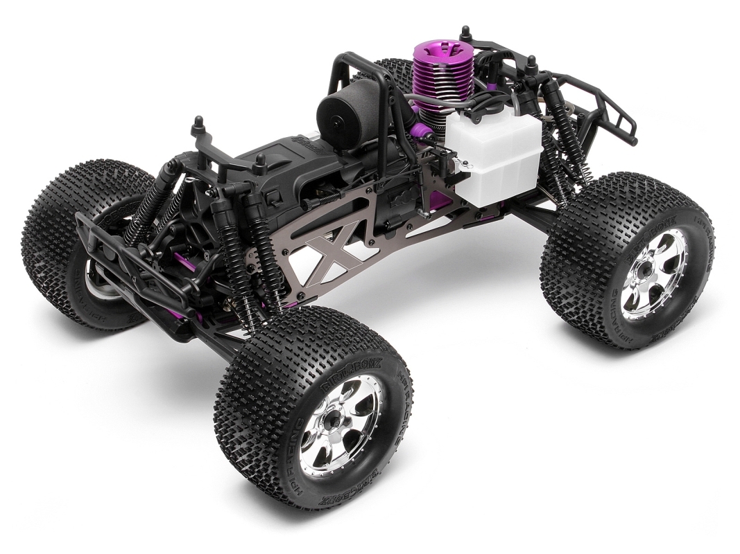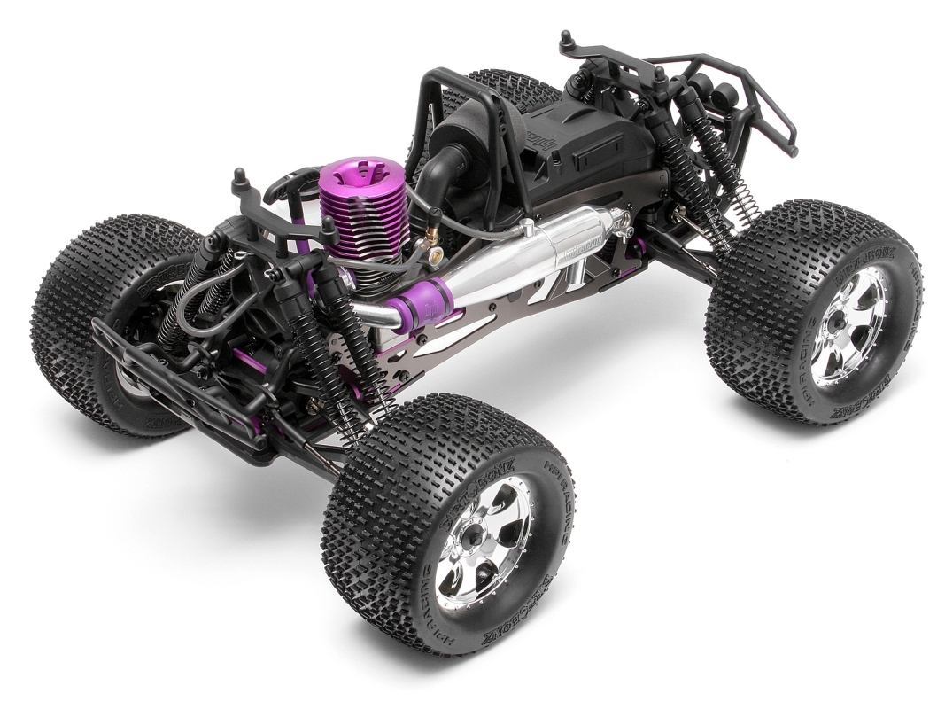 Stavebnice monster trucku 1:8 4WD s motorem HPI (K4,6ccm) a čirou karoserií GT-2. Neobsahuje elektroniku a RC soupravu.