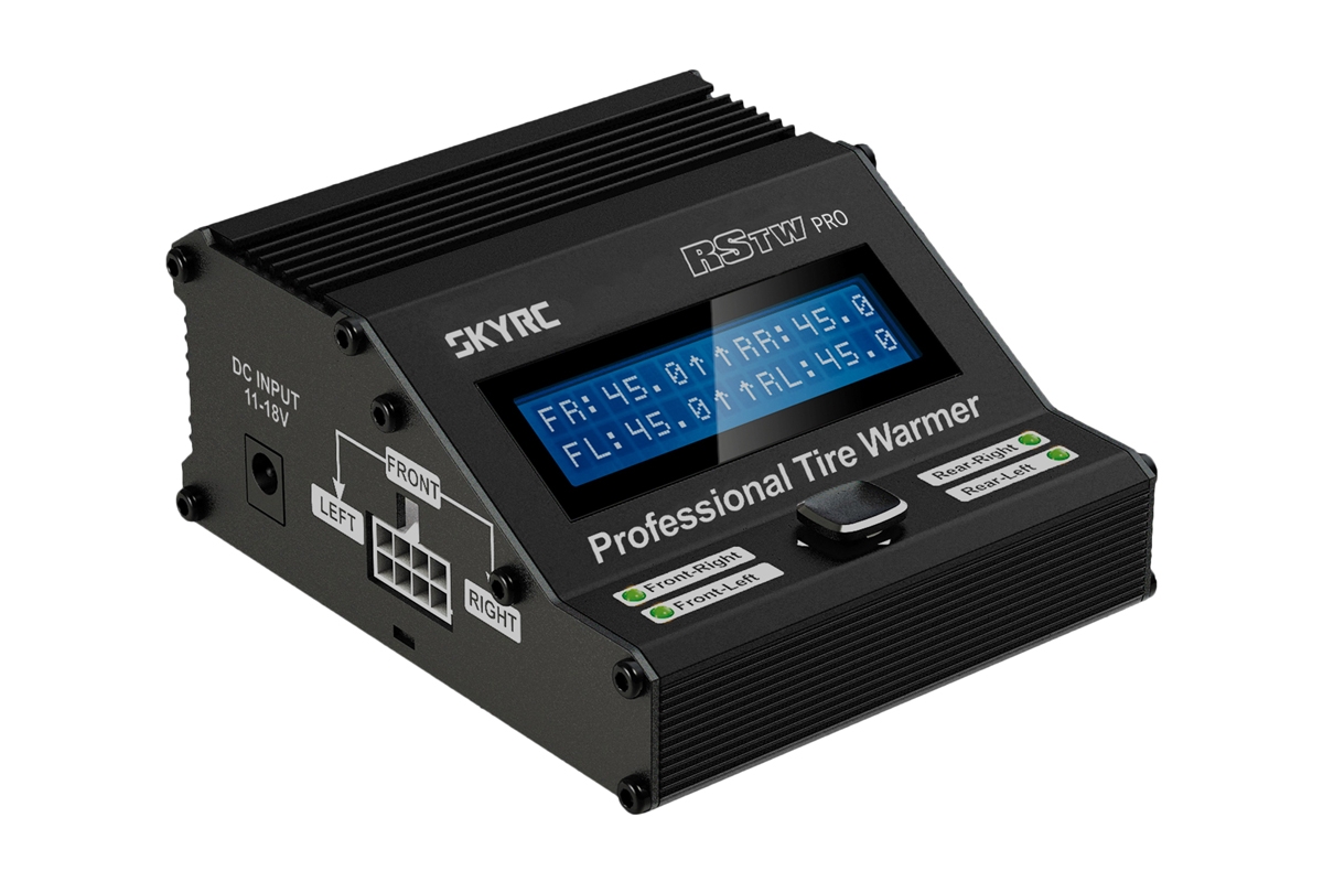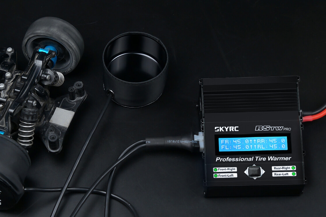 Kompaktní inteligentní předehřívač pneumatik pro RC silniční auta 1:10 vám umožní – tak jako jezdcům „velké“ Formule 1 - vyrazit do závodu s pneumatikami zahřátými na optimální teplotu hned od startu! Auto postavíte na stojánek, na kola nasadíte předehřívací návleky a spustíte zahřívací program – a je to! Samozřejmě, se vším si můžete vyhrát ještě více, předehřívat ve dvou nebo třech stupních, nanášet různá aditiva...to vše vám předehřívač bez problému umožní.