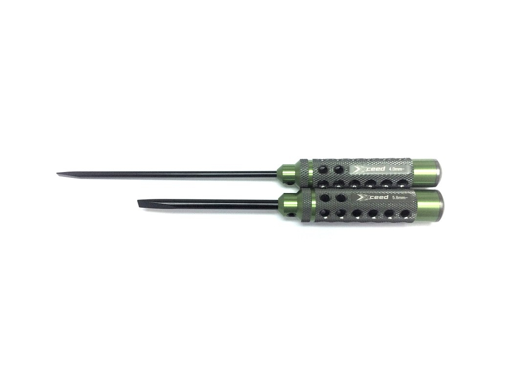 Toto je kombinovaná sada Xceed plochých šroubováků (2 ks.) s novým vzhledem a novým designem. Díky poutavým 2 barevným tónům (zelená a šedý kov) z eloxovaného dutého hliníkového designu rukojeti a špičkám HSS, které poskytují příjemně vypadající, pohodlný a lehčí pocit. Také díky nim jsou odolnější a zároveň zajišťují dobrou přilnavost k hlavě šroubu.