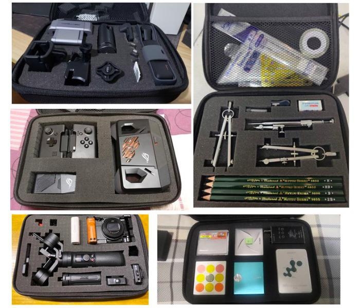 Materials: 1680D Nylon + FoamInner size: 19.5 x 15.5 x 5.5cmOuter size: 20.5 x 16.5 x 6.5cmWeight: 193gFeatures: The foam is cut to small cubes.Each size is 1 x 1cm. Different shapes can be made.