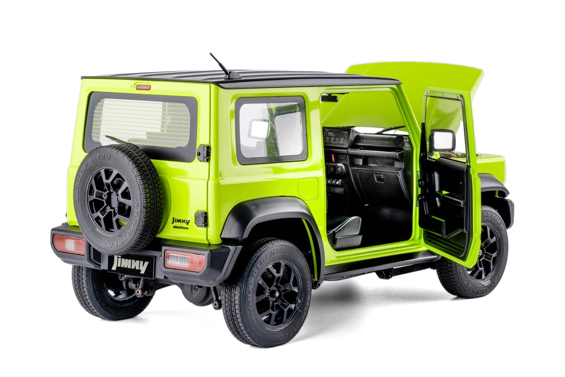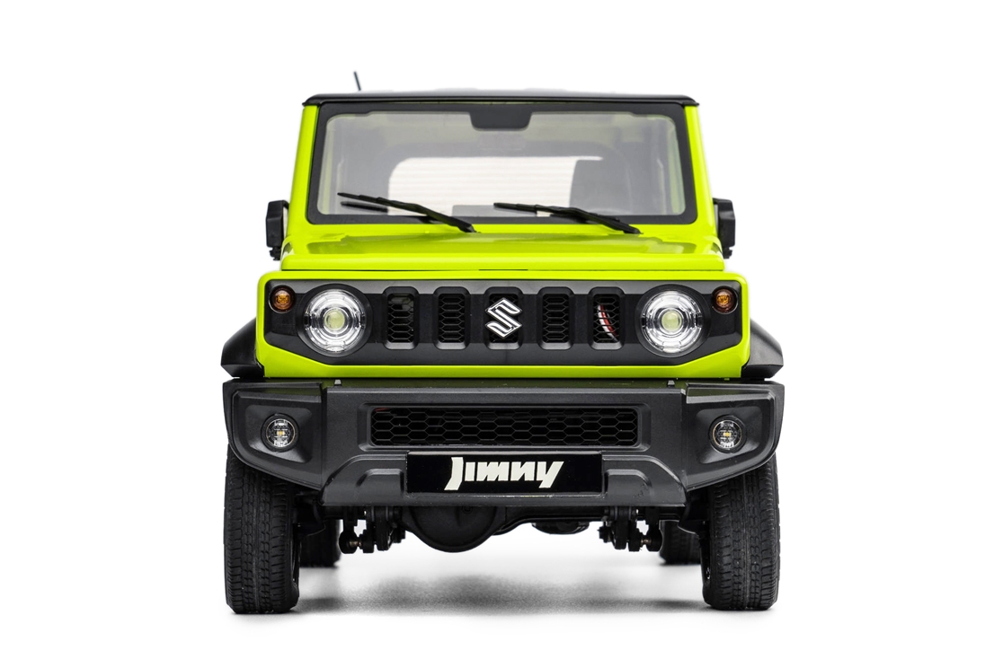 Dvanáctinový model terénního vozu Suzuki Jimny vsází na věrohodnost. Úchvatně zpracovaný exteriér věrohodně kopíruje křivky jeho reálné předlohy. Kapota lakována originálním odstínem je doplněna fotoleptanými „nerezovými“ detaily masky, galvanicky pokovenými logy Suzuki a světlomety, nebo gumovými pneumatikami Grandtrek. Součástí těla modelu jsou i sklopná zpětná zrcátka, stěrače, nebo snímatelné nárazníky umožňující vlastní úpravy.