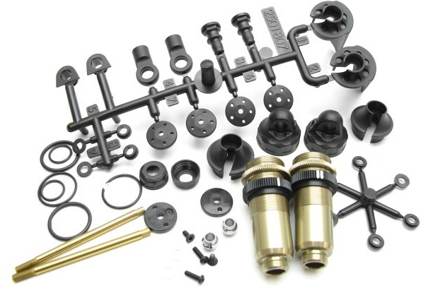 Nejnovější verze olejových tlumičů pro 1/10 Buggy s plastovou vrchní čepičkou s přeplnovací dírkou která umožńuje optimální plnění a nastavení samotného tlumiče silikonovým olejem.