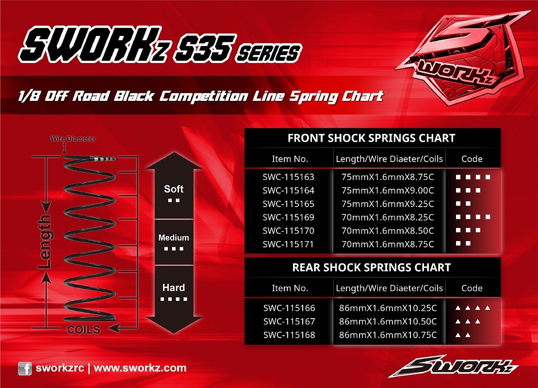 Nákupní košík » SWORKz 1/8 BLACK LINE Competition pružiny olej. tlumičů, (S2-Dot)(70X1.6X8.75), 2 ks.