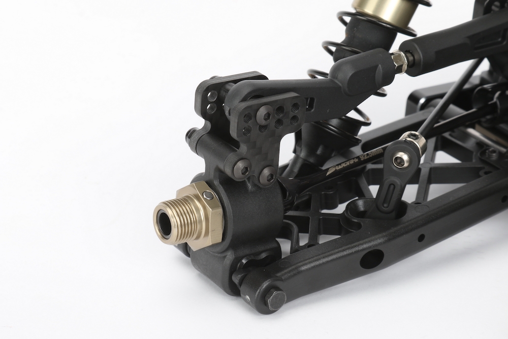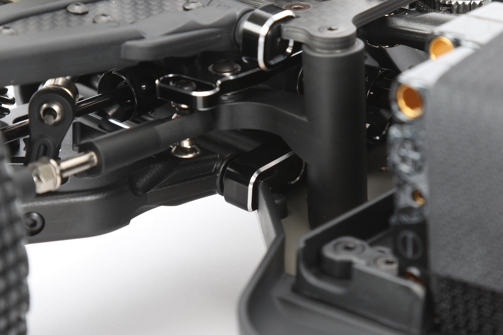 Uchycení ramen, která nyní obsahují čtvercové vložky, umožňují přizpůsobit geometrii vašeho SWORKz S35-4E tak, aby vyhovovala jakémukoli uspořádání a stavu trati. Přední a zadní ramena jsou vyrobeny z nově vyvinutého kompozitního materiálu a přesně odpovídají nové geometrii podvozku. Stejným způsobem byly přepracovány i bočnice.