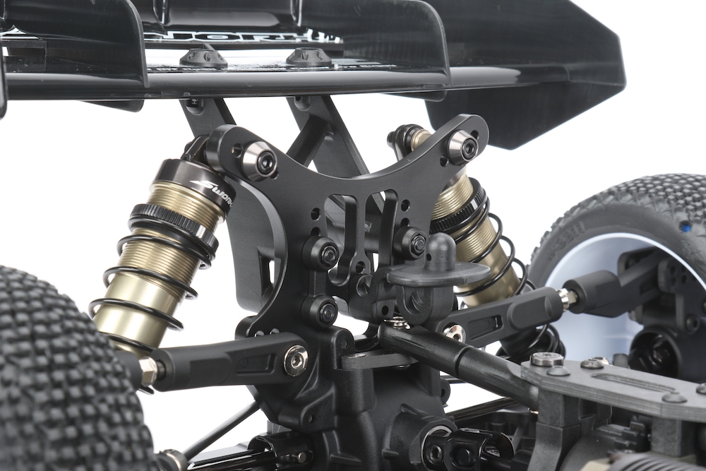 Nové lehčí uchycení spoileru umožňuje nastavit polohu a úhel křídla tak, aby byl váš SWORKz S35-4E na trati dokonale vyvážený. Aerodynamický systém optimálně spolupracuje s novou optimalizovanou karoserií.