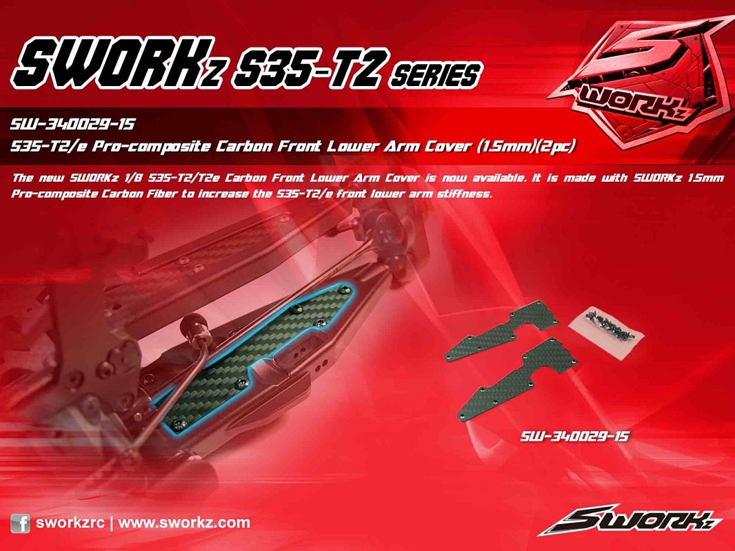 Nákupní košík » SWORKz uhlíková vzpěra předního spodního ramene, 1,5mm, včetně šroubů, 2 ks.