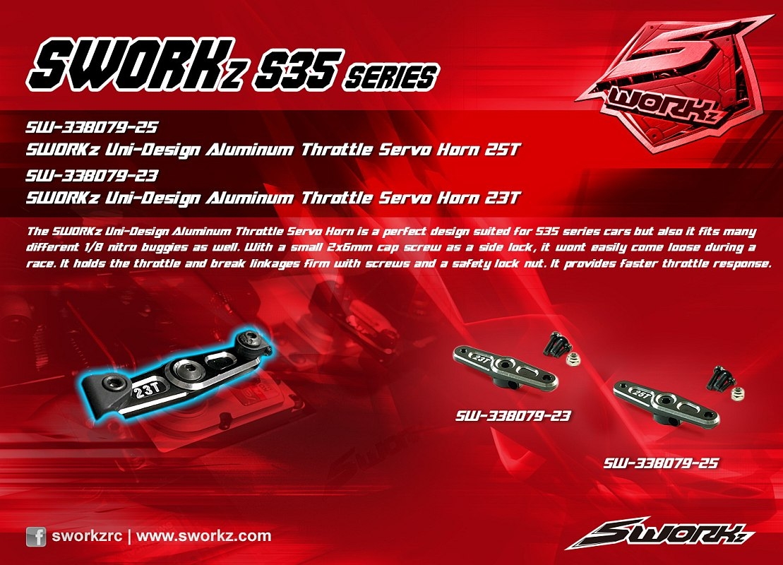 SWORKz Uni-Design 2-pojistná hlíníková černá servo dvouramená páka, 25 zubů, 1 ks.