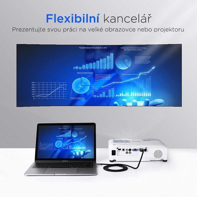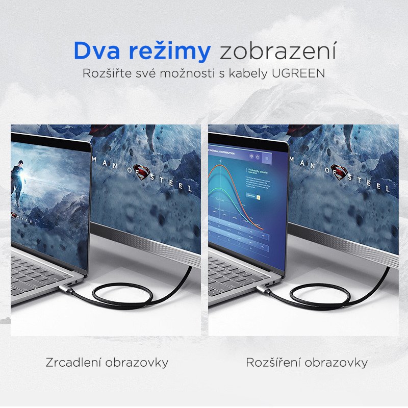 Praktický adaptér UGREEN vám umožňuje připojit laptop nebo telefon s USB-C nebo Thunderbolt konektorem k televizi nebo monitoru s HDMI.