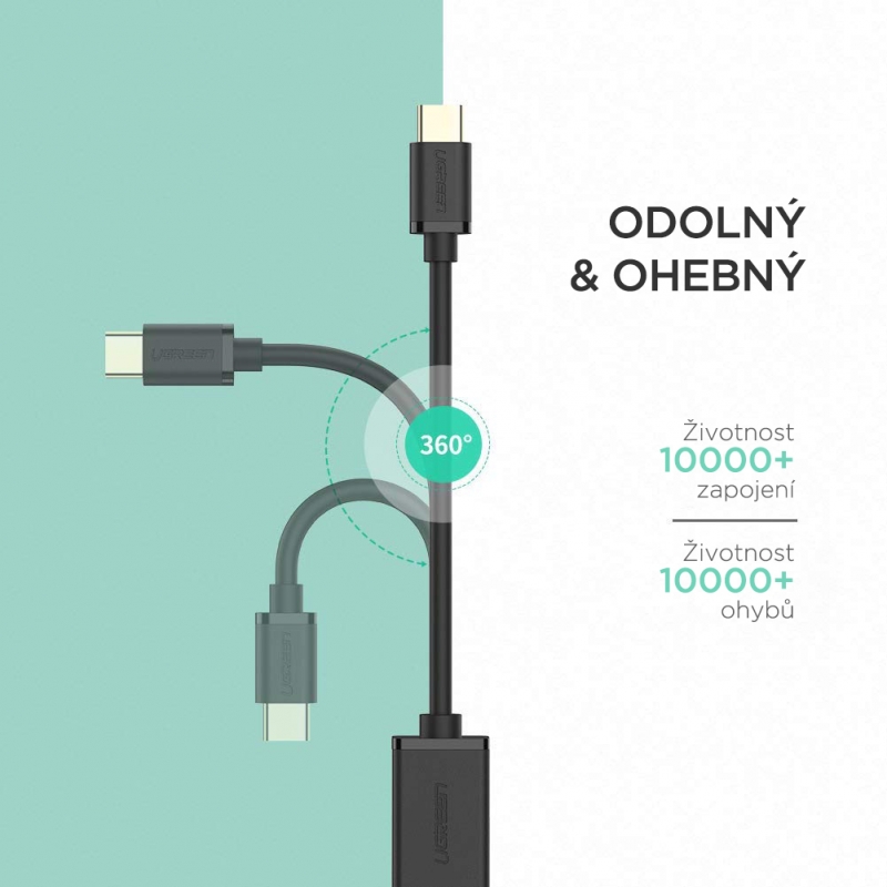 • UGREEN USB-C OTG adaptér 10cm, černý – 1ks
