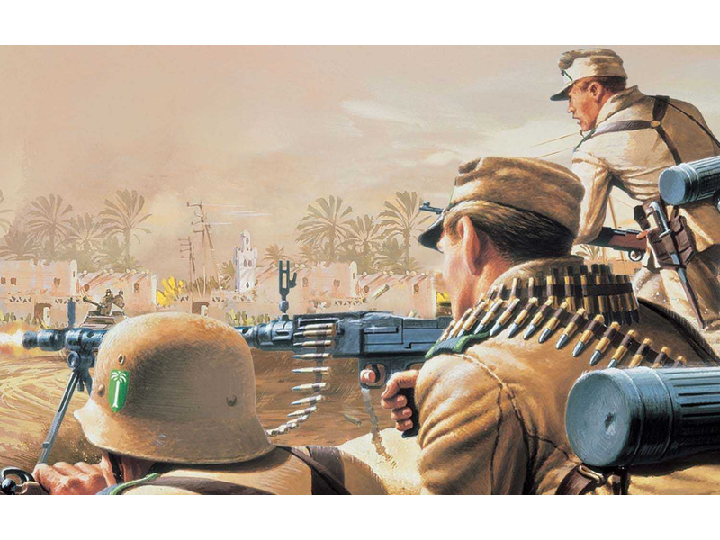 Rommelovy elitní jednotky Afrika Korps bojovaly s Montgomeryho 8. armádou, “Pouštními krysami”, napříč severoafrickou pouští. Jejich boje vyvrcholily velkou bitvou u El Alameinu. Tato skvělá sada obsahuje figurky v různých bojových pozicích a jednoho vysokého důstojníka.