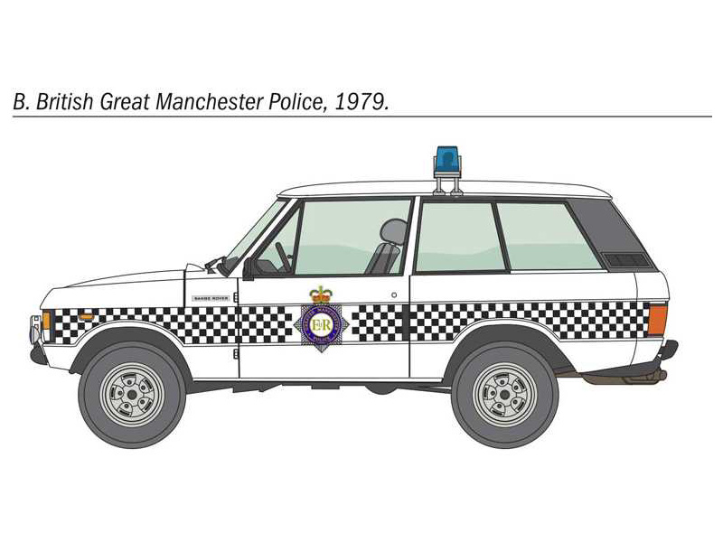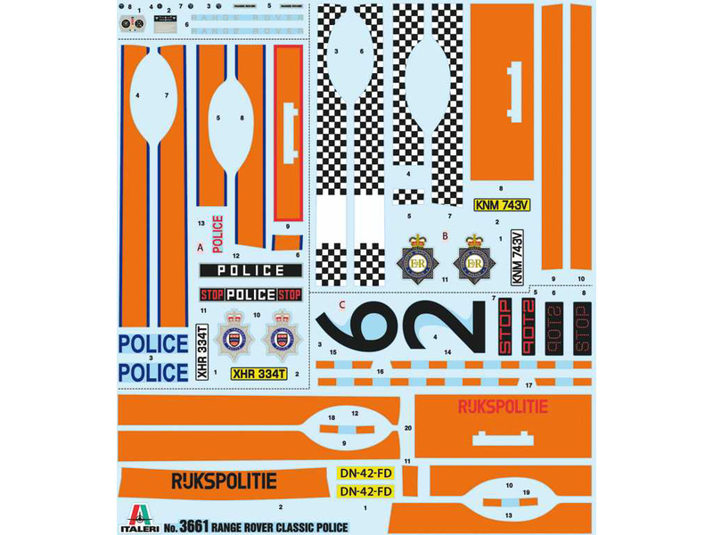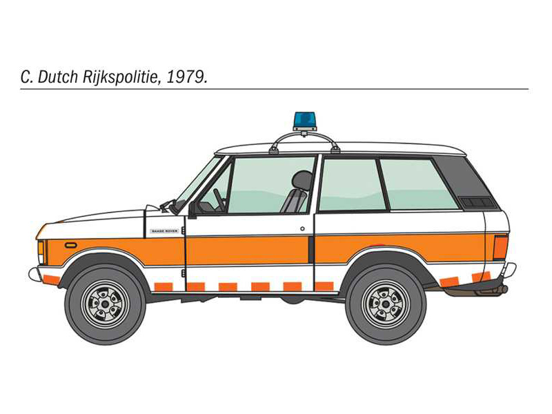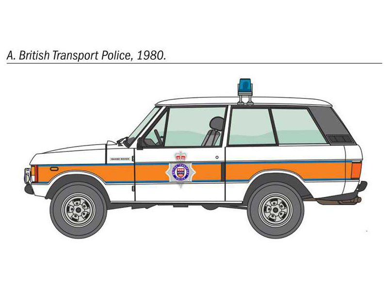 Plastikový model Italeri 3661 - auto Jaguar Range Rover Police v měřítku 1:24 ke slepení. Délka modelu 241 mm, obtížnost 3. Balení obsahuje SUPER OBTISKY.