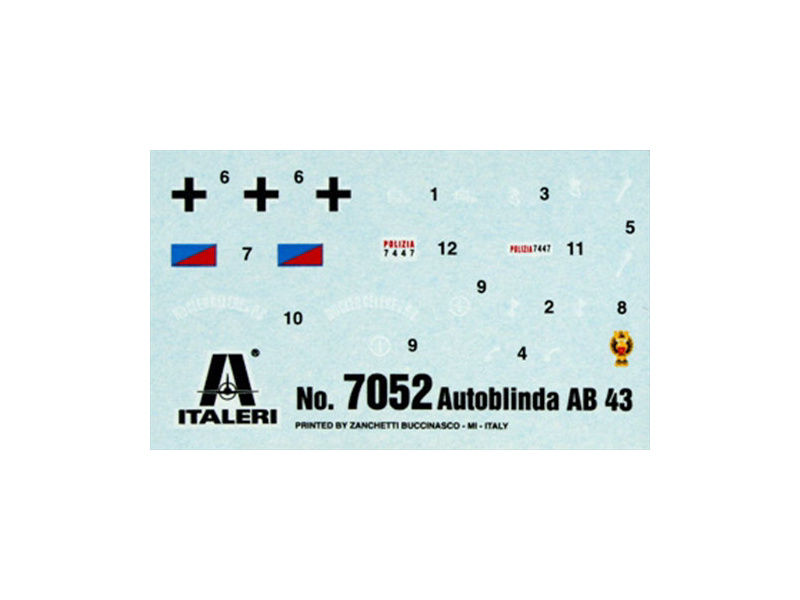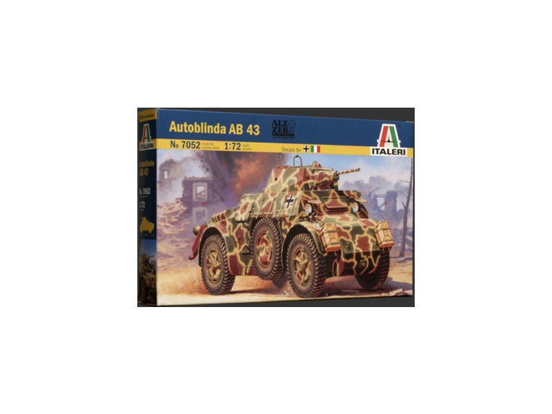 Plastikový model Italeri 7052 - military AUTOBLINDA AB 43 v měřítku 1:72 ke slepení. Délka modelu 73 mm, obtížnost 2. Balení obsahuje SKVĚLÉ OBTISKY PRO 2 VERZE MODELU.