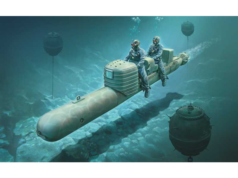 Italeri plastikový model torpéda SLC Maiale v měřítku 1:35 ke slepení. Délka modelu 198 mm, obtížnost 3. Balení obsahuje 2 postavy.